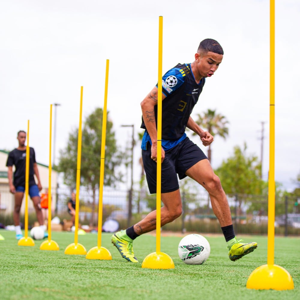 - تحديد واضح للمسار: تأتي العصا مع قمع ثابت يساعد على تحديد المسارات والمناطق بسهولة داخل الملعب، مما يعزز تنظيم التمارين وتوجيه اللاعبين.
